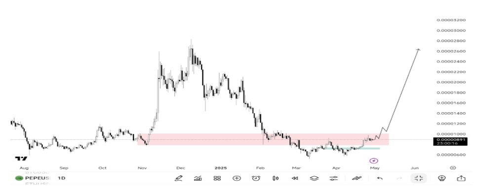 However, as noted by Friedrich on X (Twitter), Pepe (PEPE) has broken its support level on the daily timeframe to signal an opportunity for bulls to take over.