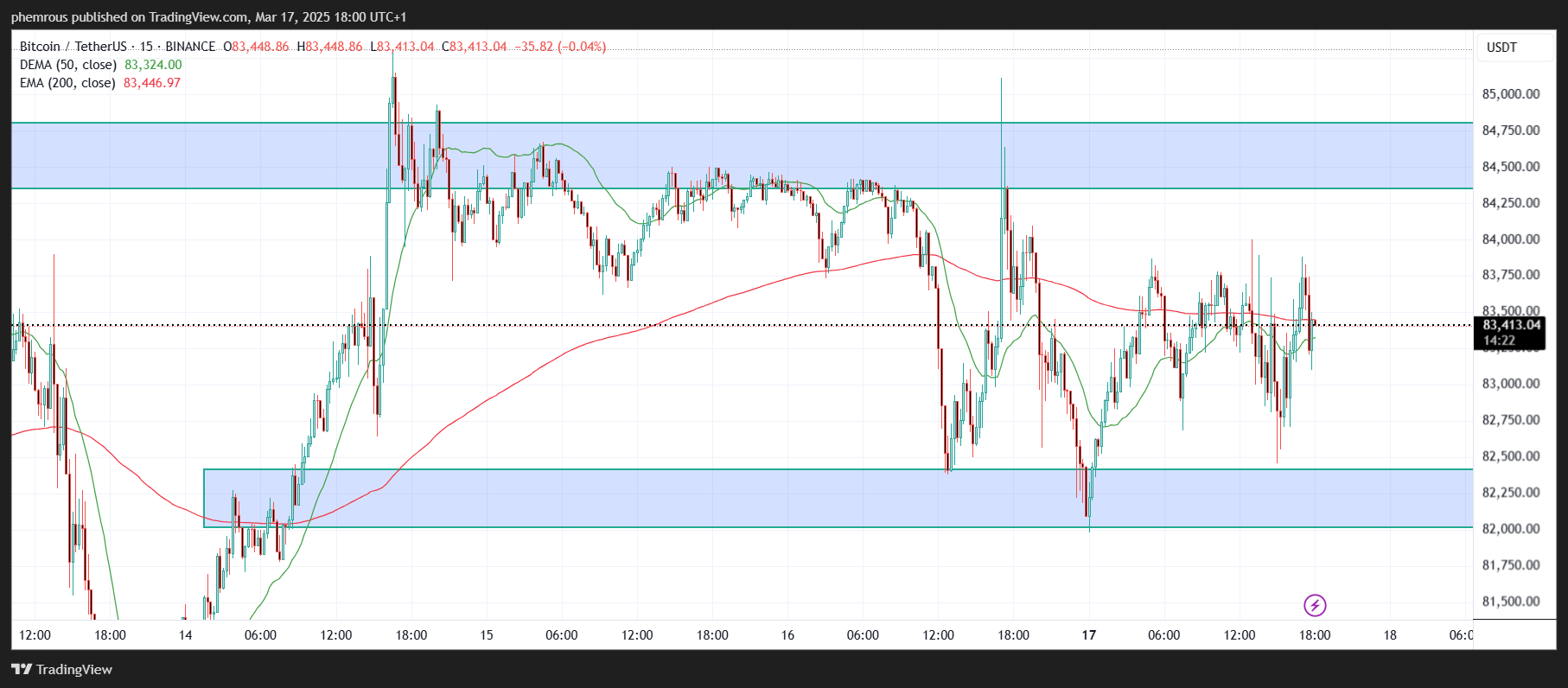 Bitcoin (BTC) has experienced a volatile trading session, hitting an intraday high of $84,692 and dipping to a low of $82,019. Currently, it’s hovering around $83,413, reflecting a slight uptick of $242 (0.29%) from the previous close. This price range highlights the ongoing battle between bullish optimism and bearish resistance.