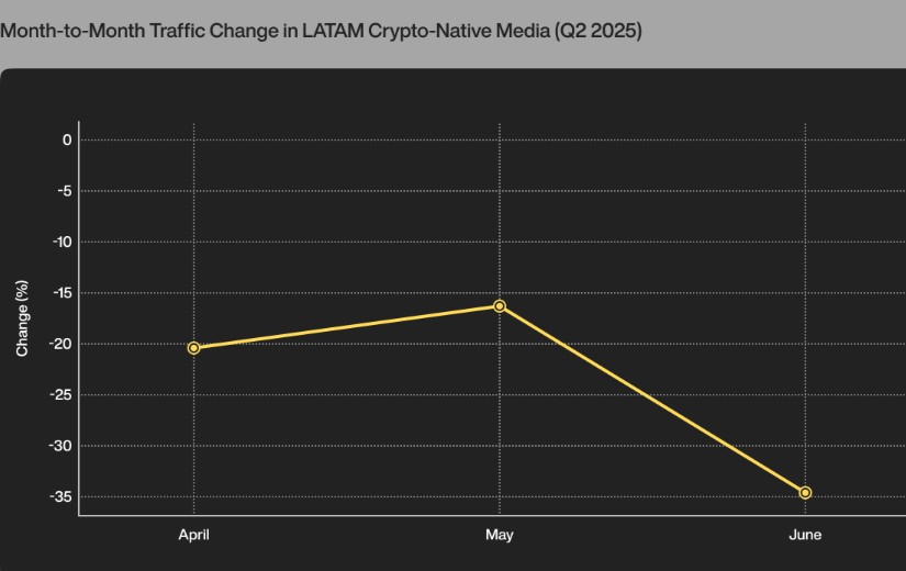Argentina led with 56% of mainstream crypto traffic, while Brazil accounted for 62% of crypto-native readership. Overall, total crypto-related traffic across LATAM climbed to 271.4 million visits, up slightly from 261.6 million in Q1, showing that while overall audience interest grew, attention shifted toward mainstream sources.