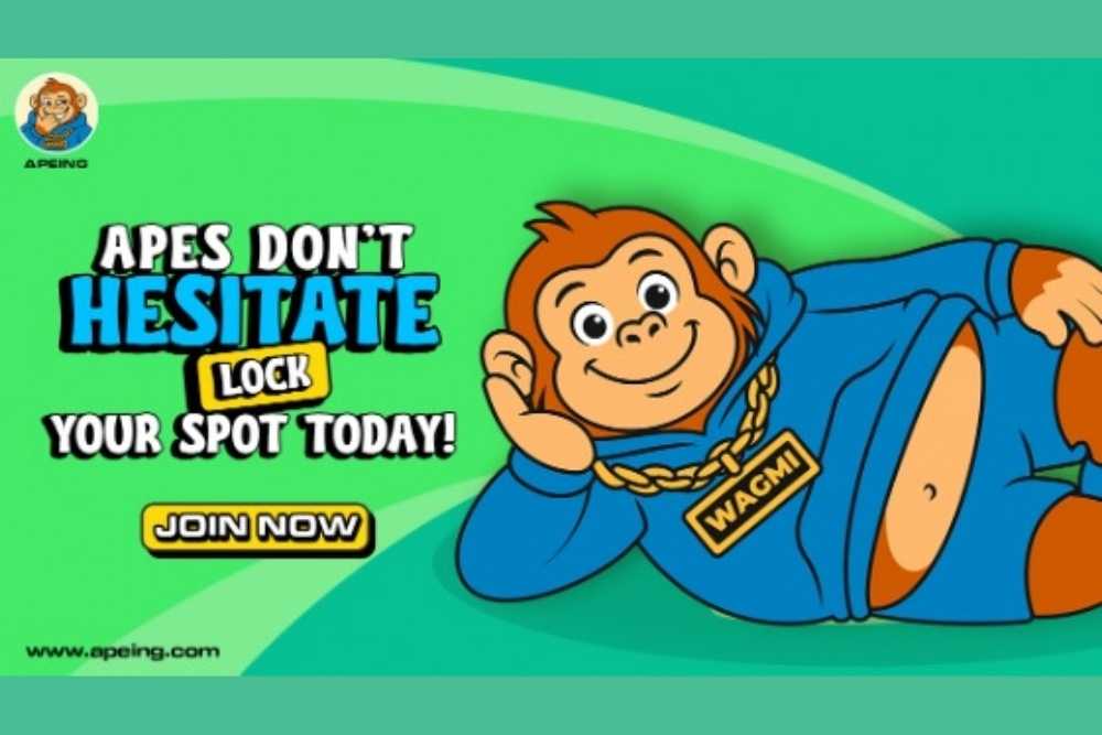 Apeing is the best crypto to watch, and its Whitelist is the rocket fuel driving early adoption. Upcoming presale stage 1 participants gain access to limited tokens at just $0.0001 per $APEING with a projected listing price of $0.001. Those who hesitate risk missing the lowest entry price, leaving them watching from the sidelines as early holders enjoy the potential for a huge ROI.