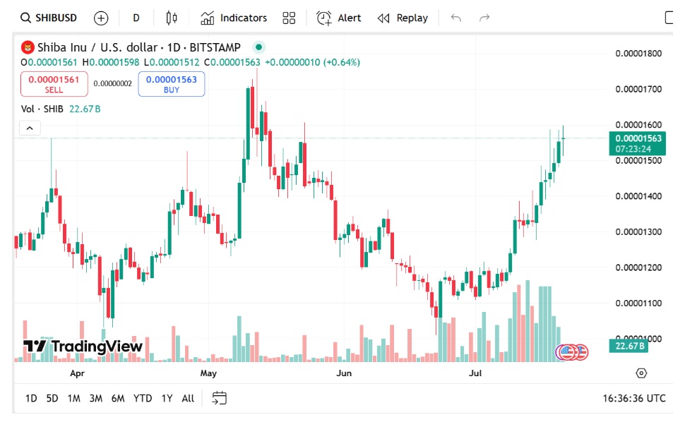 Shiba Inu Coin is making headlines again. The price of SHIB has risen by 2.55%, trading at $0.00001552 with a market cap of $9.14 billion and over $597 million in average daily volume. The price is driven by good Shiba Inu news on token burns, growth of the ecosystem, and SHIB entry into decentralized finance (DeFi).