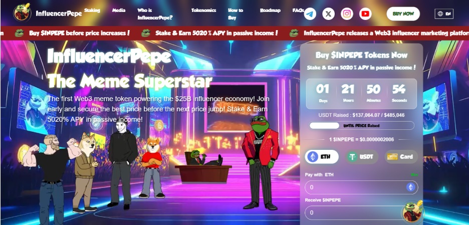 Pepe has carved out a substantial position in the meme coin sector. Now, Influencer Pepe (INPEPE) is emerging as a serious contender. With bold staking incentives, a vibrant community, and an expanding ecosystem focused on influencer marketing tools, INPEPE could soon follow in PEPE’s footsteps. Its upcoming product roadmap, paired with increased visibility from crypto influencers, is fueling speculation that INPEPE may soon see a dramatic breakout.