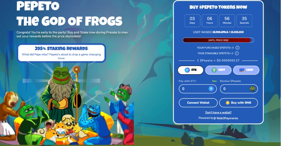 Investors can still secure $PEPETO at the presale rate of $0.000000127 on pepeto.io. Supported payment options include USDT, ETH, BNB, and card via MetaMask or Trust Wallet.