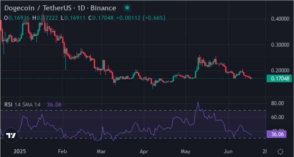 Dogecoin’s price has been declining recently. In the past week, it dropped by 13.76%. Over the last month, the price decreased by 26.69%. Looking back six months, Dogecoin has lost 45.56% of its value. The current price range is between $0.1615 and $0.1976.