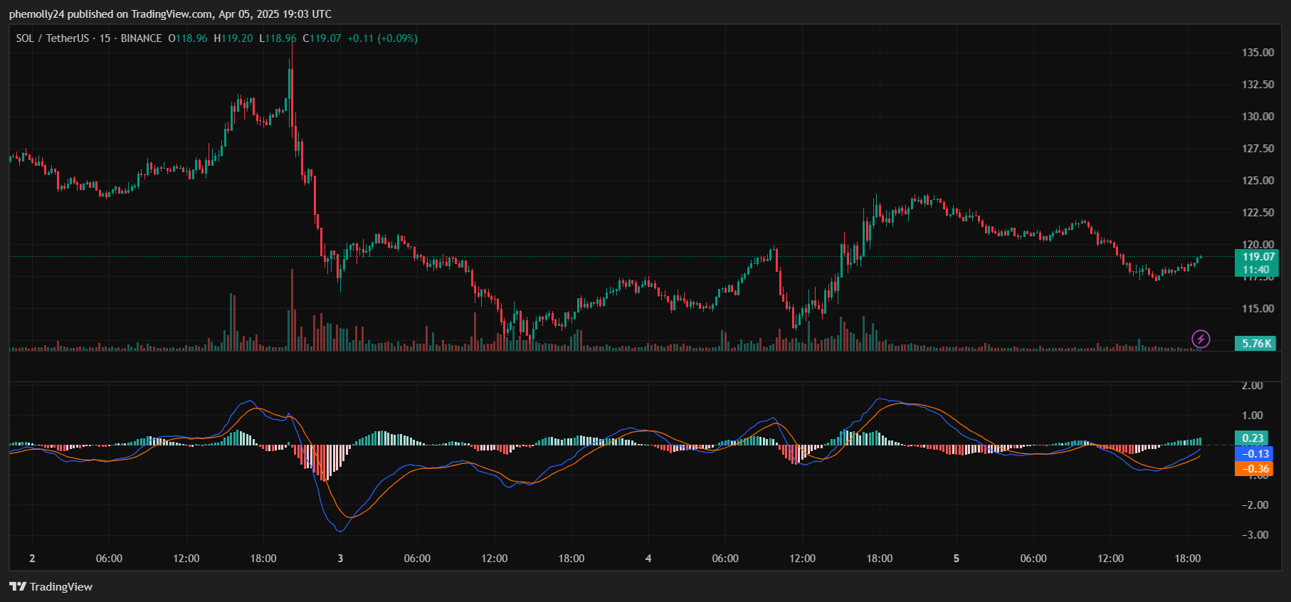 Short-term structure shows a retracement within a broader bullish trend. If SOL holds above $116 and reclaims $120, a rally toward $125–$130 is possible. If not, expect a dip to $114–$111.