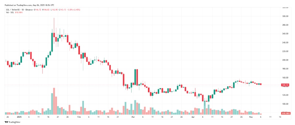 Solana is trading near $146.87, recovering from congestion issues that tested the network in April. With improved scalability and speculation around a Solana ETF, bullish sentiment is returning. A breakout above $155 could open the door to $180–$212, say analysts.
