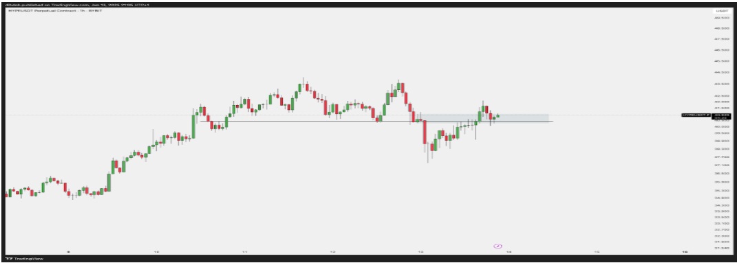 Currently, Hyperliquid (HYPE) is trading at approximately $41.15. The price is hovering just above the reclaimed support zone; however, failure to maintain this level could suggest renewed downside pressure.