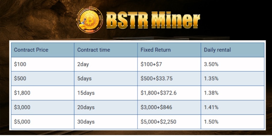 (The platform has launched a variety of stable income contracts, which can be viewed on the official website of BSTR Miner.)