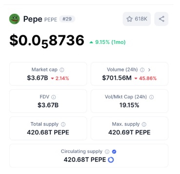 However, with PEPE’s current market cap already quite elevated and much of its growth priced in, the odds of another massive breakout appear slim. While some short bursts may still occur, a repeat of its early 100x rise is unlikely.