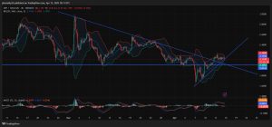Support and resistance zones are clearly defined. The nearest support rests at $2.1077, with stronger support at $2.0143 (a level that previously served as a rebound point). On the upside, immediate resistance looms at $2.1814. A successful breakout and close above this resistance could open the gates for a retest of $2.40, where sellers previously overwhelmed buyers. Price is now consolidating above the broken trend line, which has flipped to support (a bullish retest that often precedes further upside when sustained).